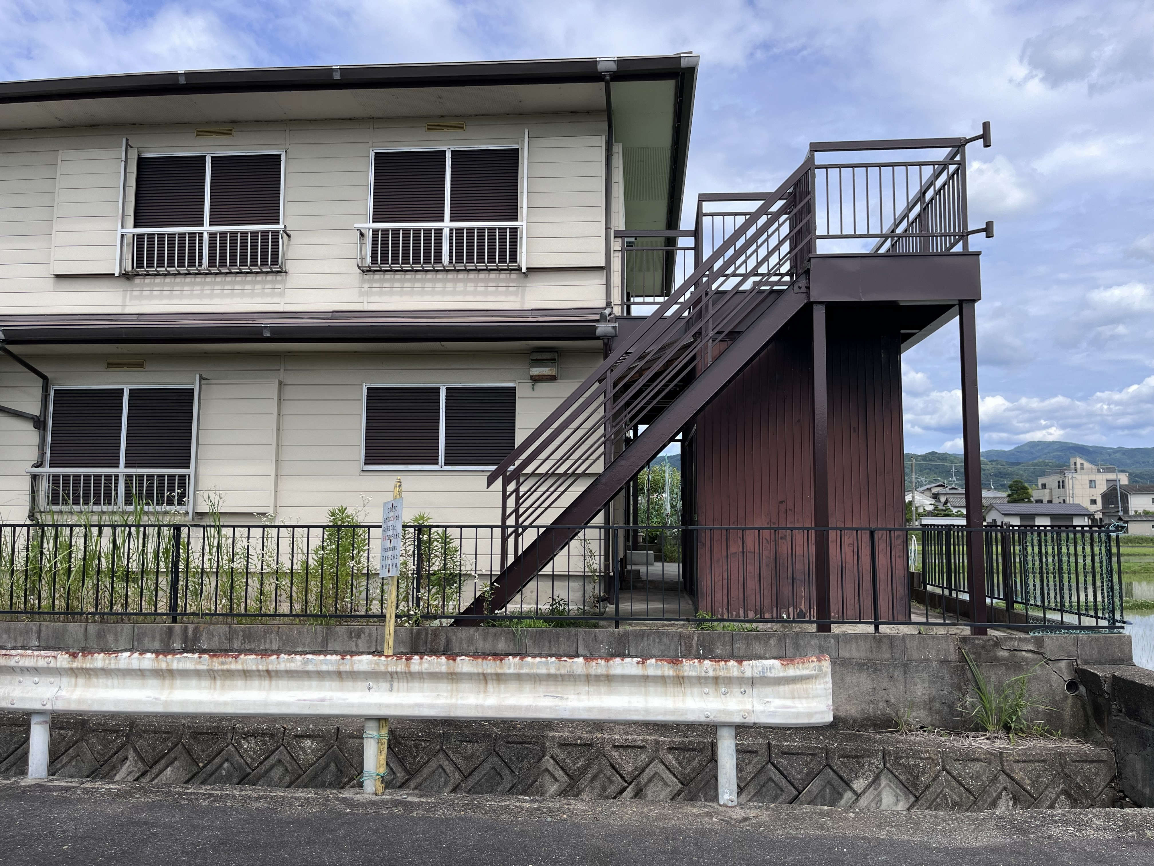 南側は敷地から一段下がり、田畑が広がるのどかな風景。